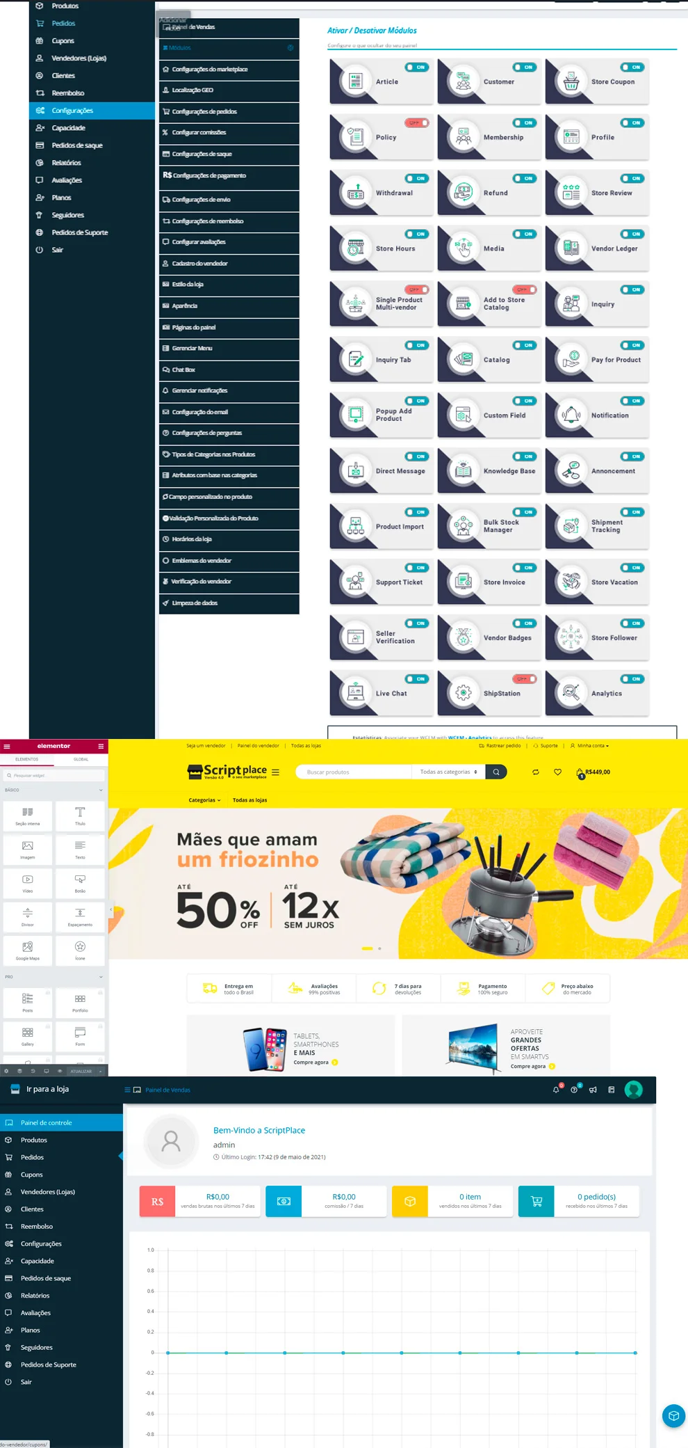 O Script Place v4.0 é uma solução avançada em PHP e WordPress, projetada para desenvolvedores e empreendedores que precisam de uma plataforma robusta de vendas online com múltiplos vendedores. Com integração nativa ao Elementor, ele oferece total flexibilidade para criar um ecossistema de vendas moderno, escalável e de alto desempenho.